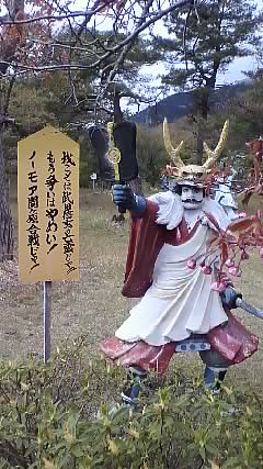 この建ち並ぶコンクリート像。一応有名所の人物には傍らに名札があるのです。かなりマイナーな人物も多いのですが、自分の知っている武将を捜すのもまた一興かも知れません。ただ目的の人物を見つけられるのか分からないくらい大量にコンクリート像あります…。僕は宮本武蔵を発見し一人ひゃっほうしてました。