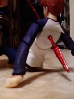 フィグマの身体を支えるための棒が士郎君に全く入らないんです。背中の穴と棒の大きさが違いすぎてもはや笑えそうです。