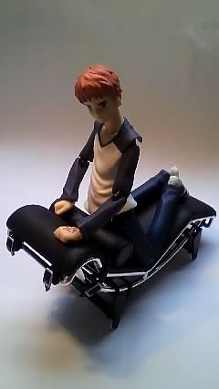 並べる予定が士郎君が一人リラックスなオチに。しかもイスが何というか、結構インテリすぎて高校男児に似合わないという。…むしろ弓さんが黒シャツだったら似合いそうな。